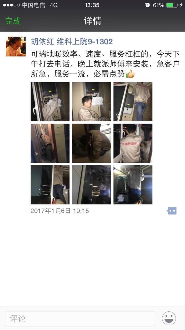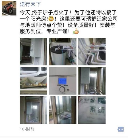 装修结束时,上门安装壁挂炉,进行系统调试,并教授业主地暖使用方法。