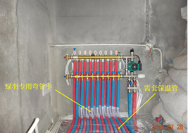 分集水器安装做到平直、牢固,主管应保持3‰坡度,安装完打压验收做保温。 -